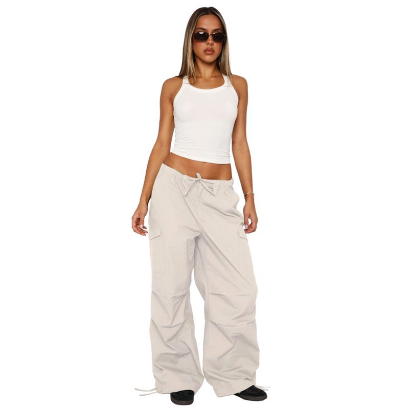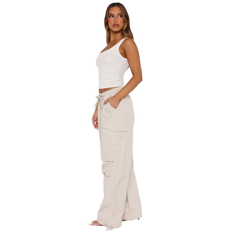 Women's Loose Drawstring Multi-Pocket Straight-Leg Cargo Pants Khaki L