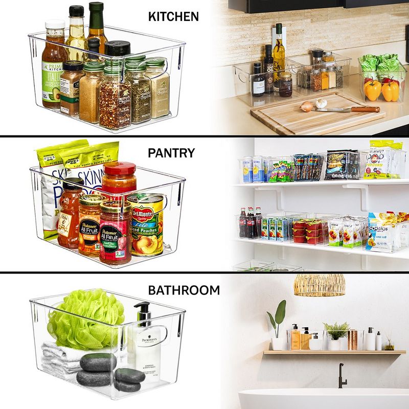 Sorbus 8 Pack Medium Clear Acrylic Storage Bins - for Kitchen, Cabinet Organizer, Pantry & Refrigerator