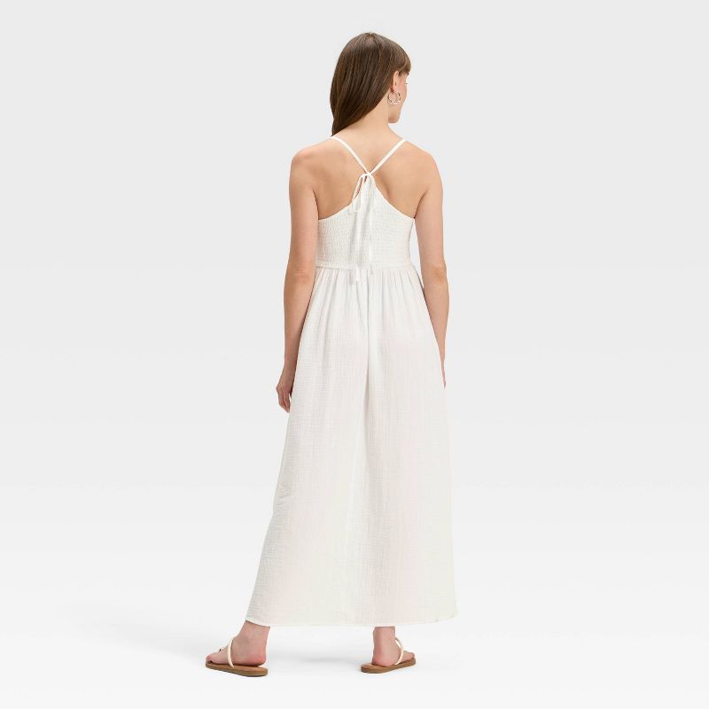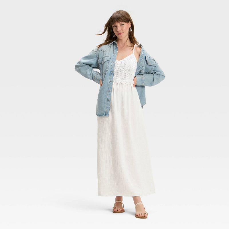 Women's Sleeveless Crochet Trim Maxi Sundress - Universal Thread™ White XL