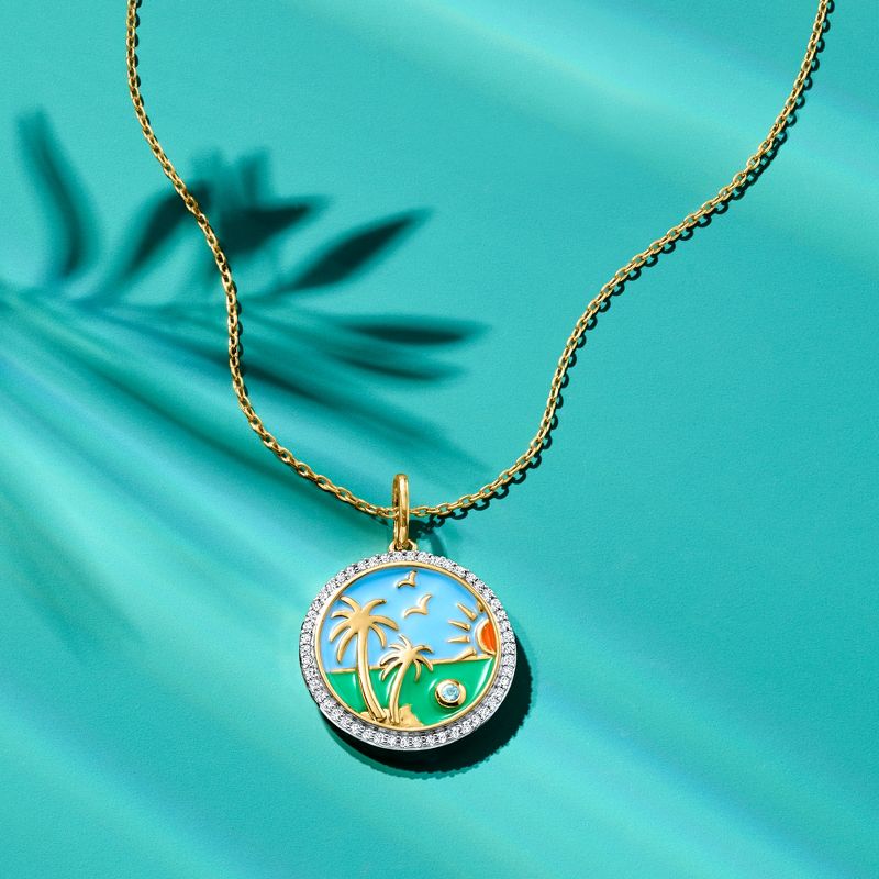 Ross-Simons 0.30 ct. t.w. White Topaz Beach Pendant Necklace With Multicolored Enamel and Swiss Blue Topaz in 18kt Gold Over Sterling Size 18