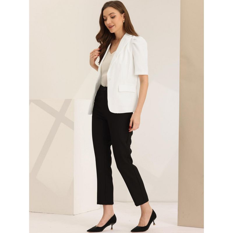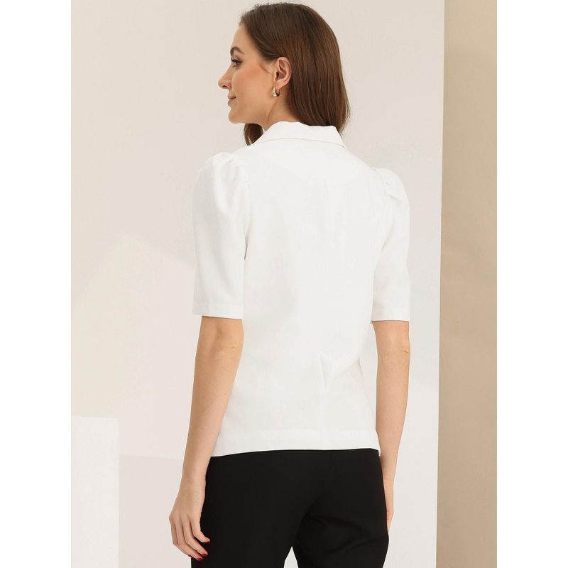 INSPIRE CHIC Women's Lapel Collar Buttoned Summer Work Office Short Sleeve Casual Blazer Jacket White Large