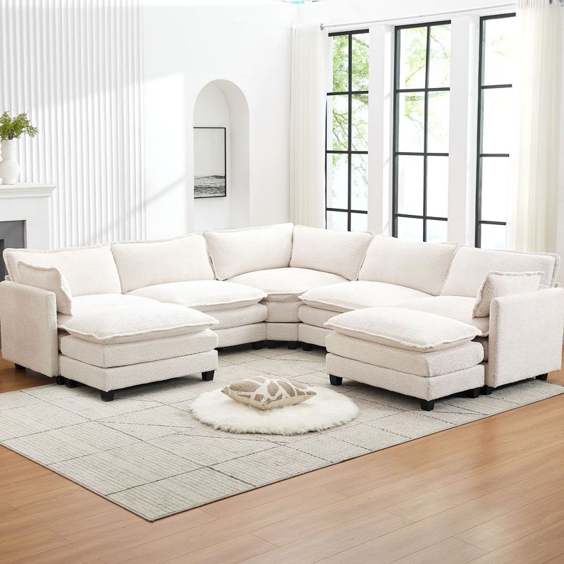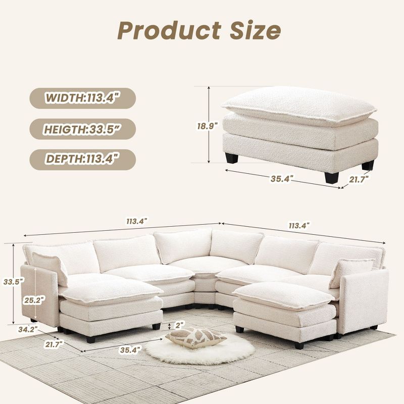 HYLEORY U-Shaped Sectional Sofa , Indoor Furniture Convertible Modular Circle Velvet Sectional Sofa Set with 2 Ottomans for Living Room