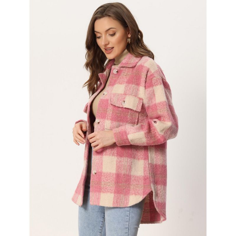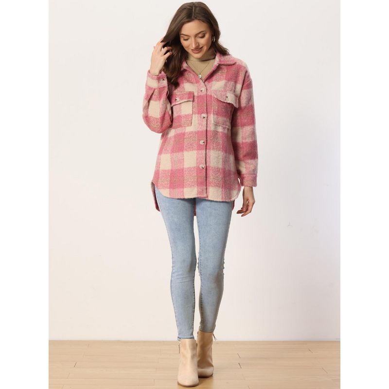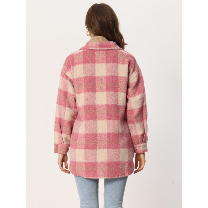 Allegra K Women's Plaid Flap Collar Button Front Pockets Shirt Jackets Pink Small