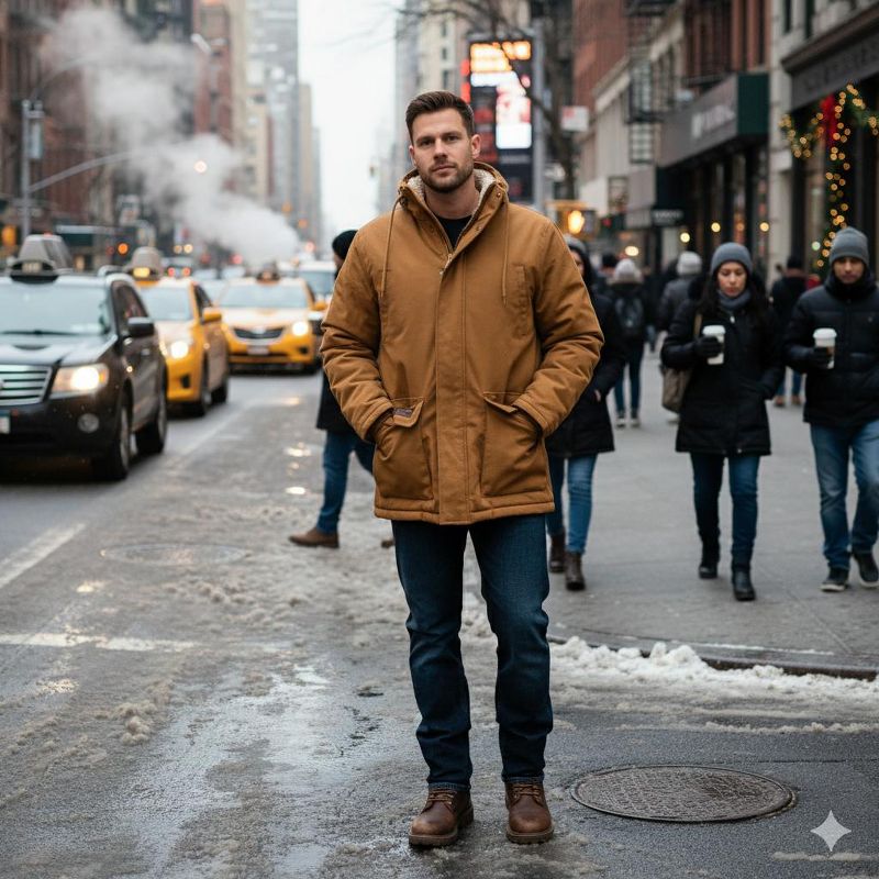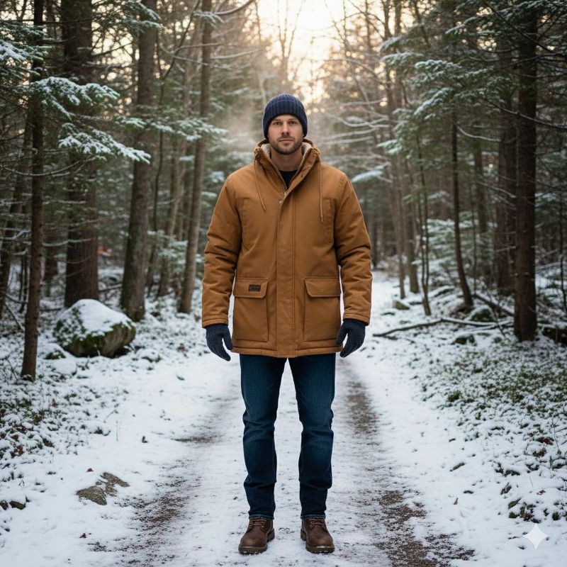 Canada Weather Gear Men’s Duck Canvas Parka|Heavyweight Insulated Winter Jacket with Hood and Full Zipper Closure - Brown - X Large