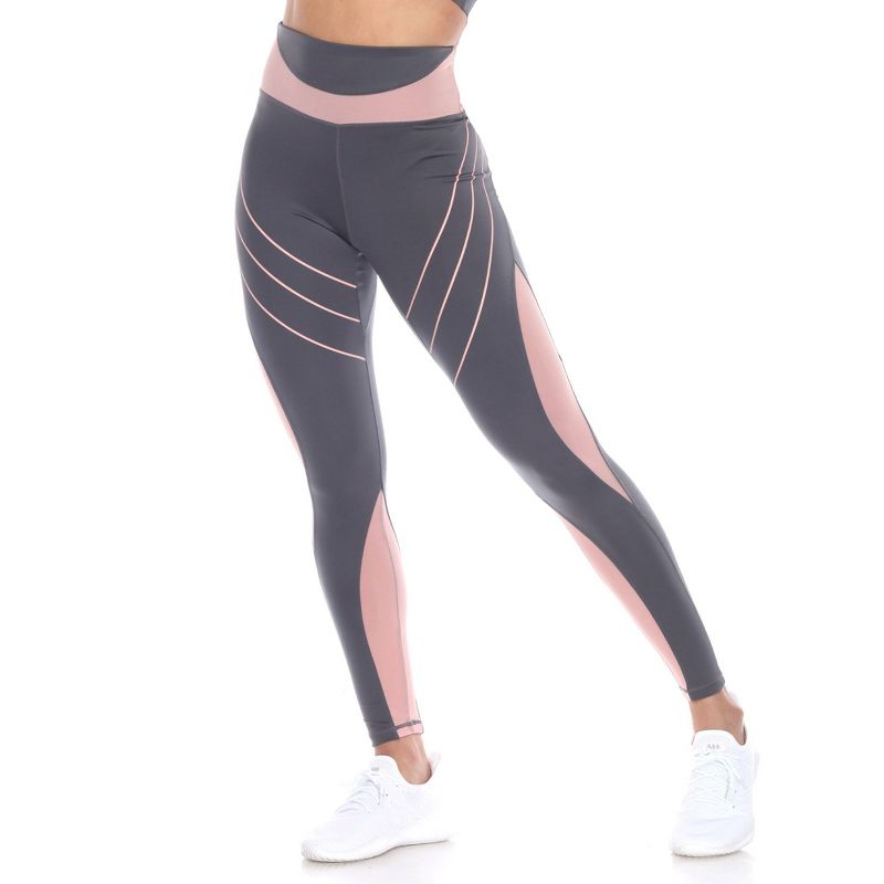 Women's High-Waist Reflective Piping Fitness Leggings Grey Small - White Mark