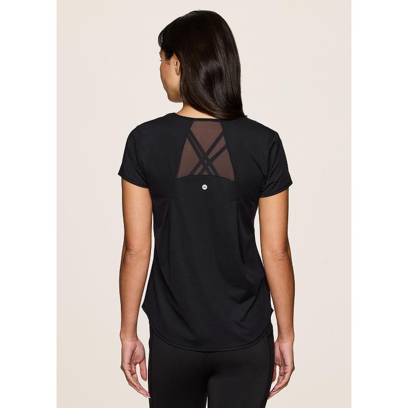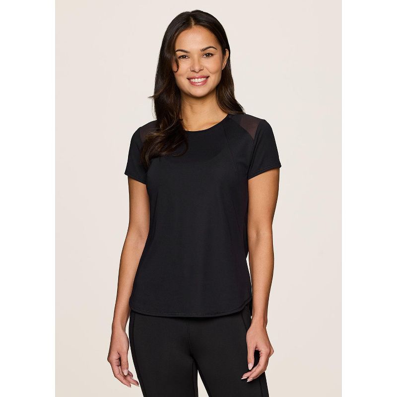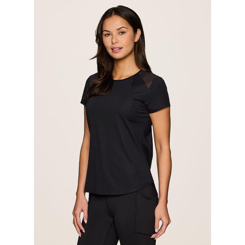 RBX Active Women's Short Sleeve T-Shirt Quick Drying Workout Top with Mesh Panels - Black,XL