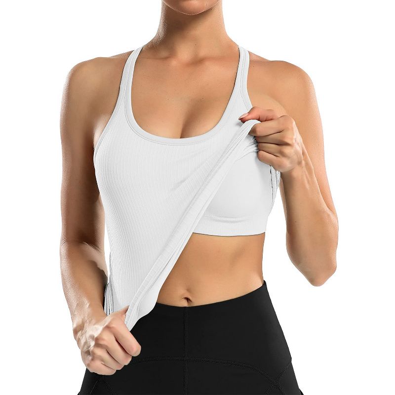 Attraco Women's Ribbed Workout Tank Tops with Built in Bra Tight Racerback Scoop Neck Athletic Top White S