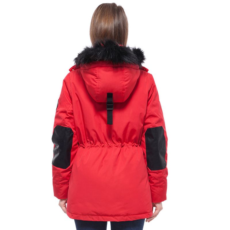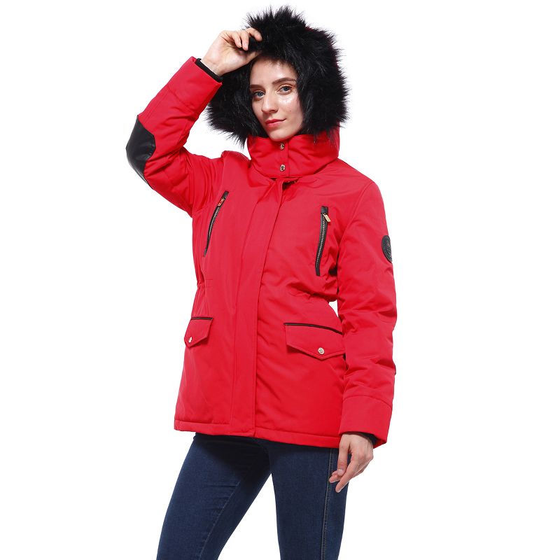 Rokka&Rolla Women's Winter Coat with Faux Fur Hood Parka Jacket-Fresh Red, size Medium