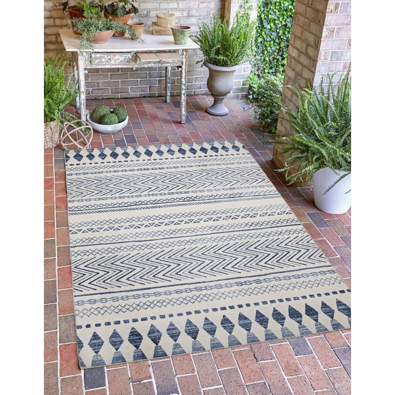 3'x5' Devimy Washable Outdoor Rug Ivory/Blue - Linon