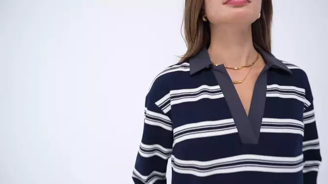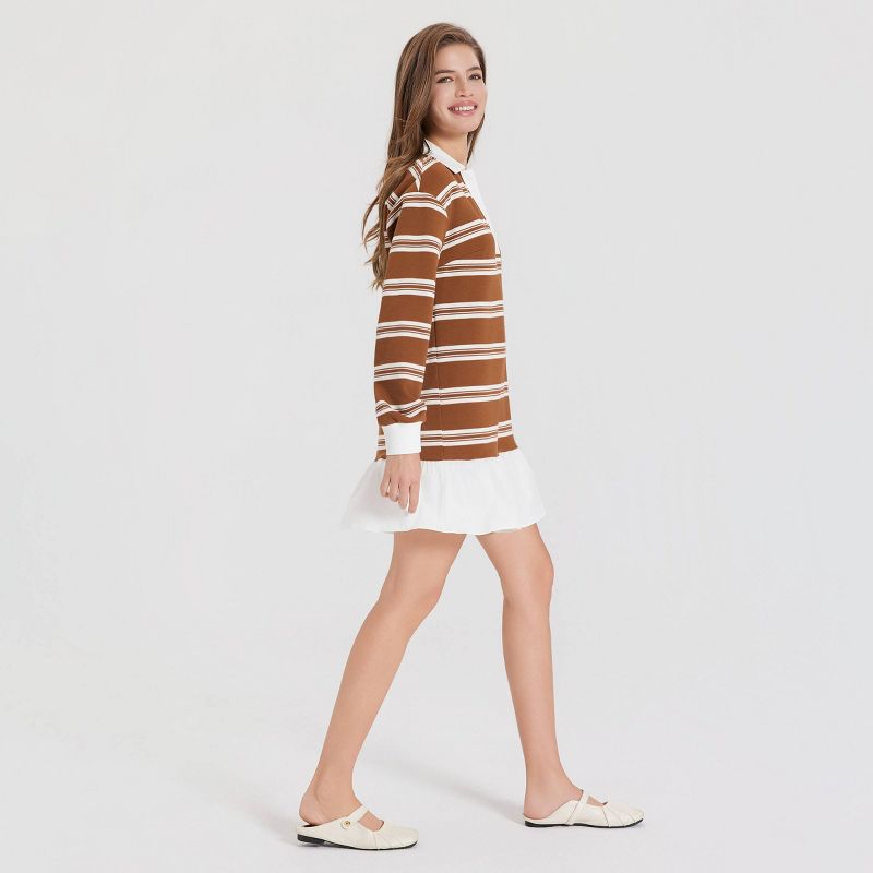 Women's Long Sleeve Mini Polo T-Shirt Dress - A New Day™ Brown/White Striped XL