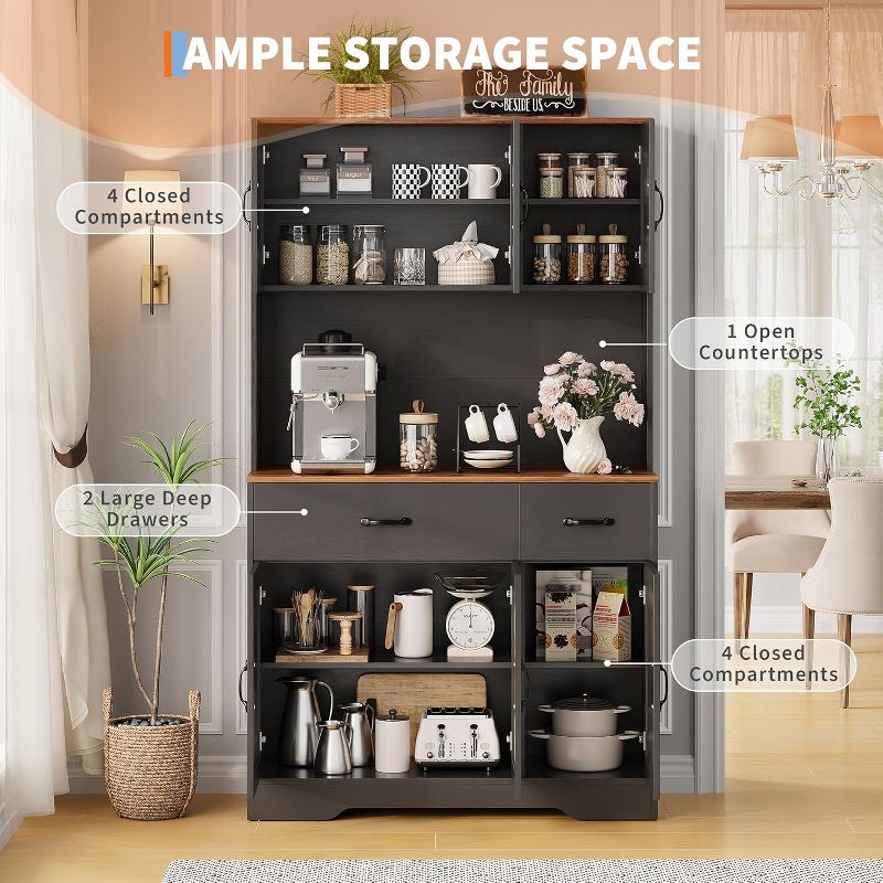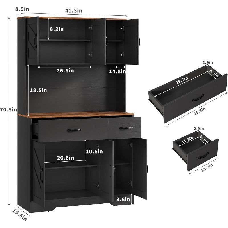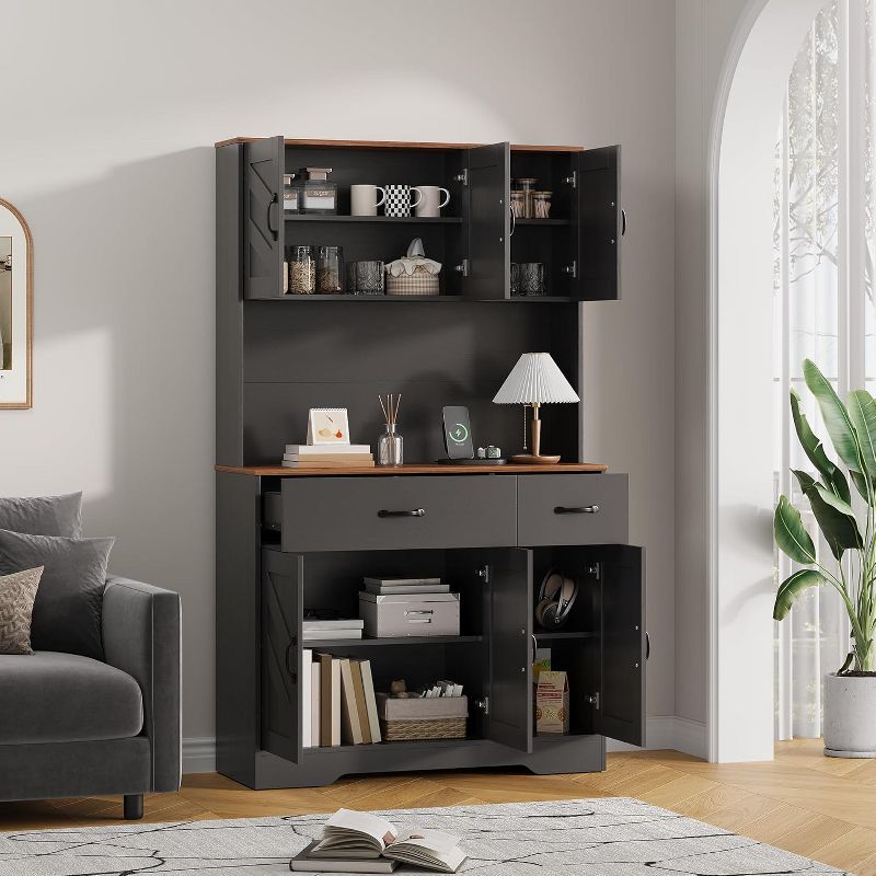 71" Pantry Cabinet with Charging Station, Kitchen Pantry Storage Cabinet with Drawers and Countertop, Farmhouse Kitchen Hutch Cabinets Food Pantry