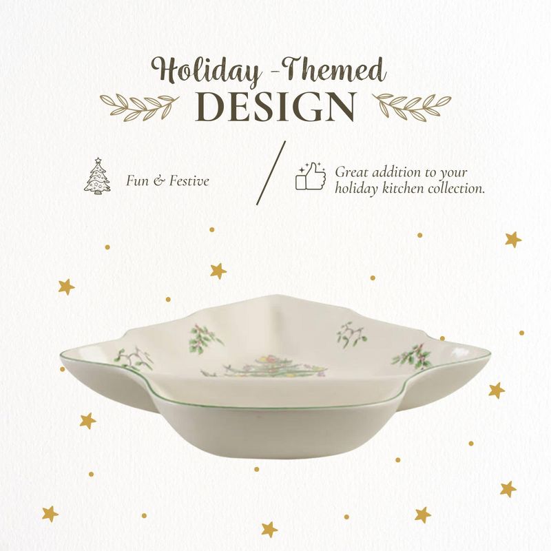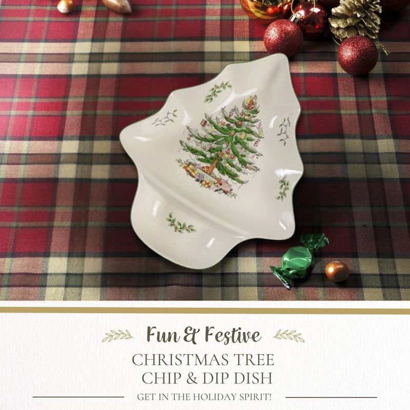 Spode Christmas Tree Chip and Dip Tree-Shaped Dish - 14-Inch Porcelain Holiday Serveware - Dishwasher, Microwave, Freezer Safe