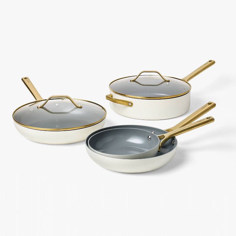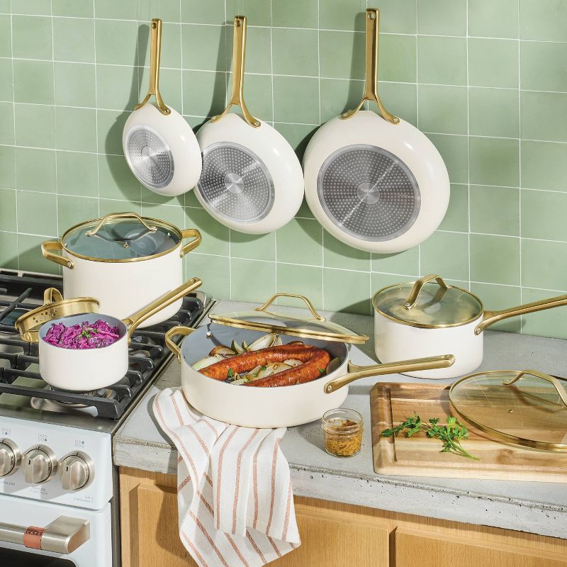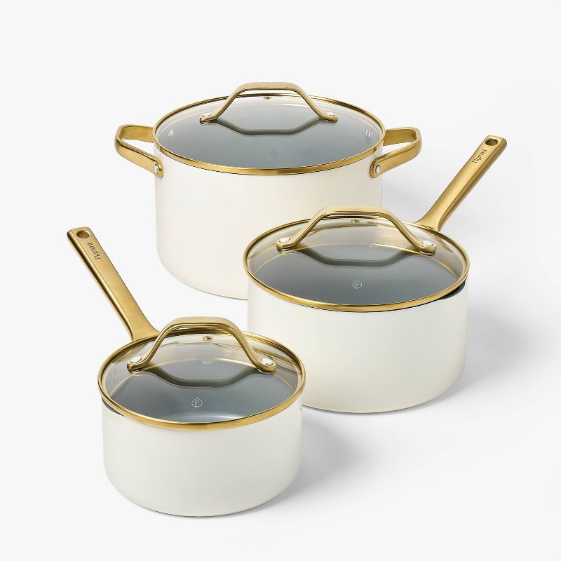 12pc Nonstick Ceramic Coated Aluminum Cookware Set with Champagne Handle - Figmint™