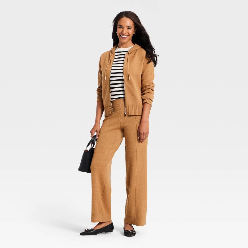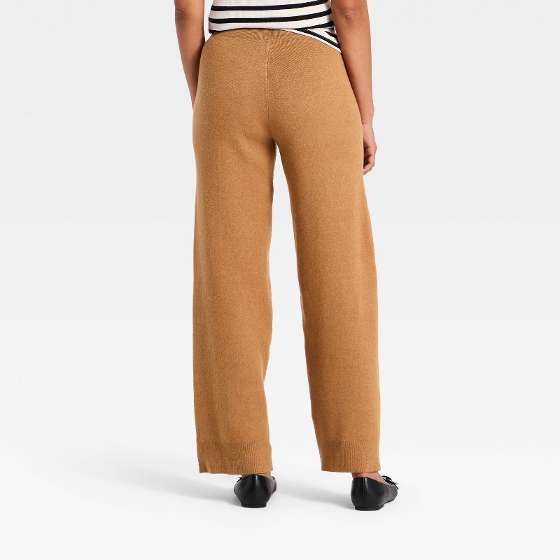 Women's Wide Leg Sweater Pants - A New Day™ Brown L