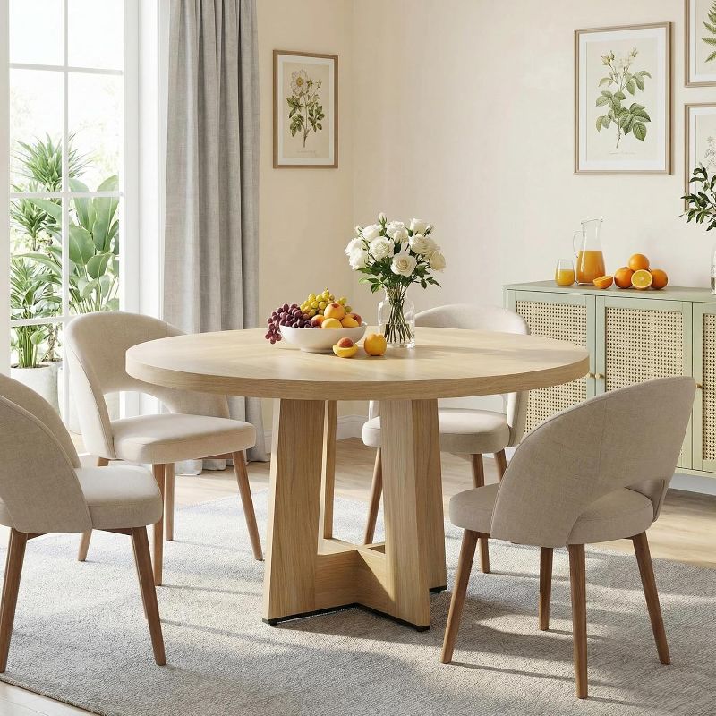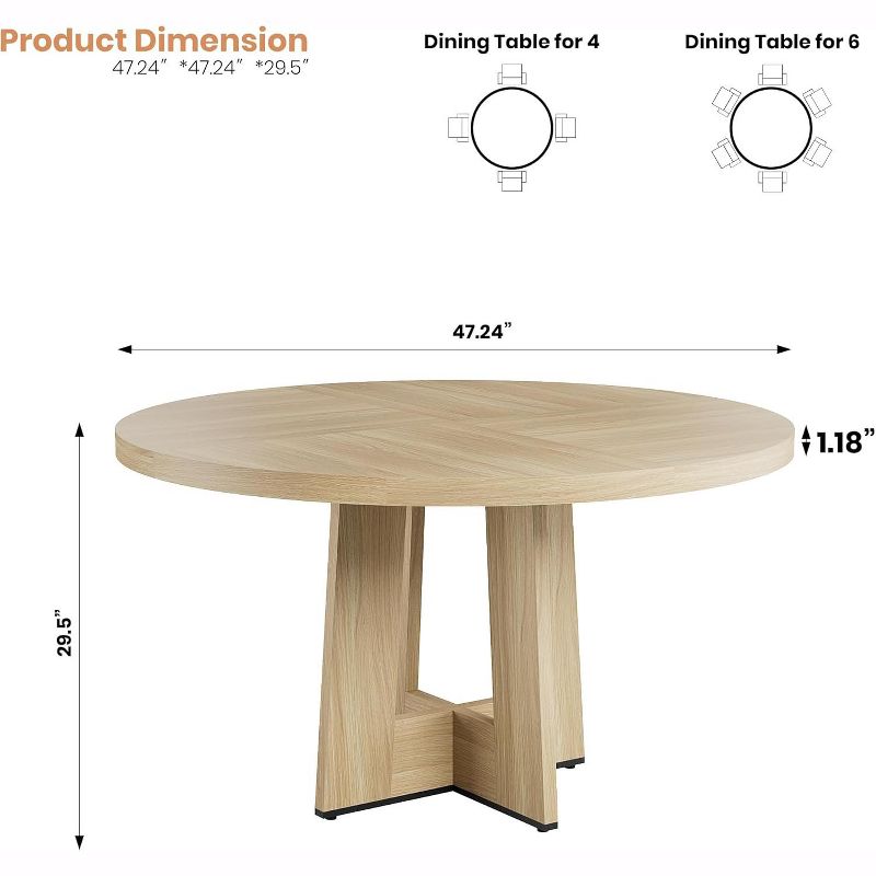 47"Round Dining Table for 4-6 People, Circle Kitchen Dinner Table with Sturdy Pedestal Base, Space Saving Dinning Furniture for Living Room, Kitchen