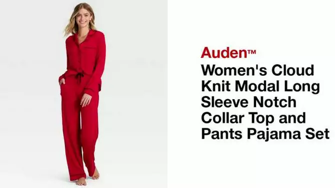 Women's Cloud Knit Modal Long Sleeve Notch Collar Top and Pants Pajama Set - Auden™ Pink M