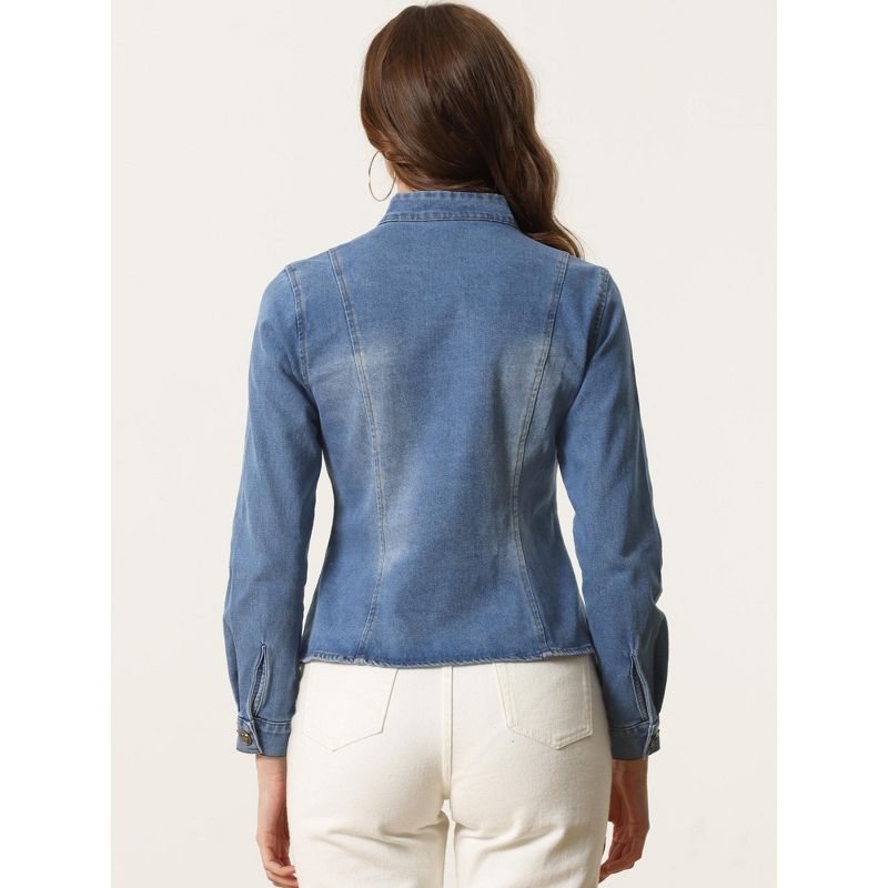 INSPIRE CHIC Women's Button Front Stand Collar Long Sleeve Jean Jackets with Pockets 2 Packs Blue/Dark Blue Small