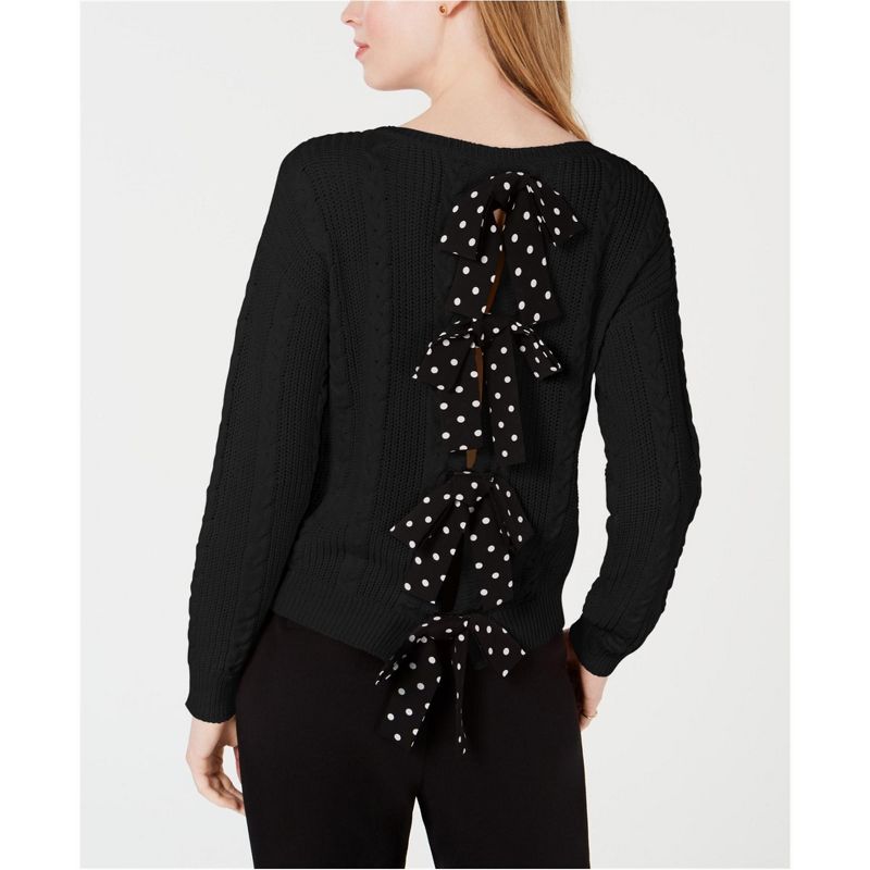 maison Jules Womens Bow-Back Knit Sweater, black, Large