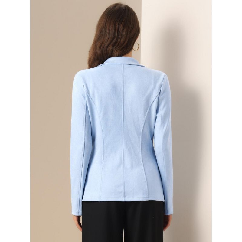 INSPIRE CHIC Women's Lapel Collar Long Sleeve Faux Suede Work Office Blazer Medium Grey Blue
