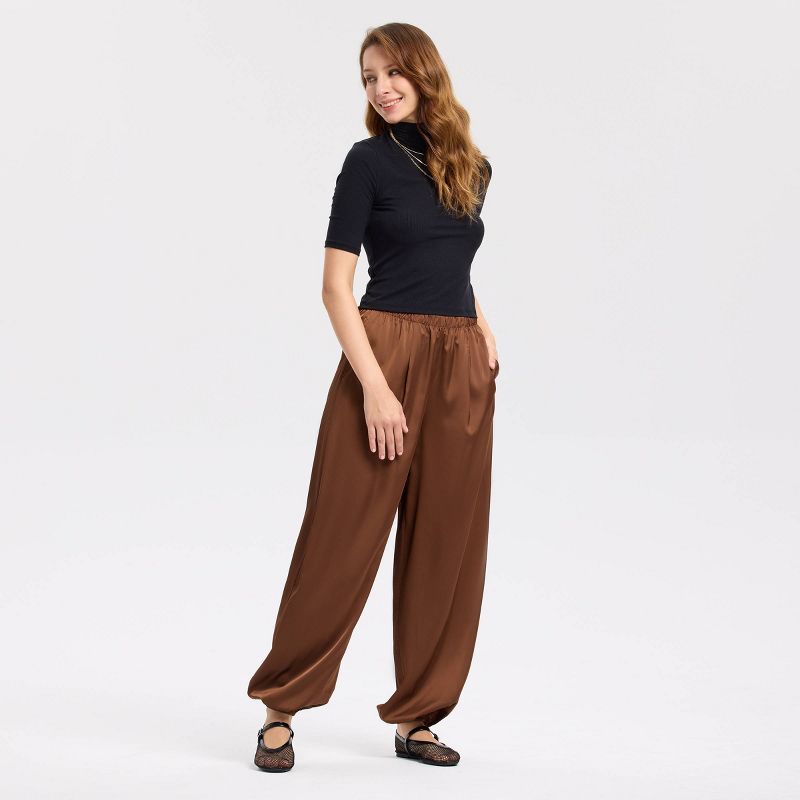 Women's High-Rise Satin Twill Balloon Pants - A New Day™ Brown XL