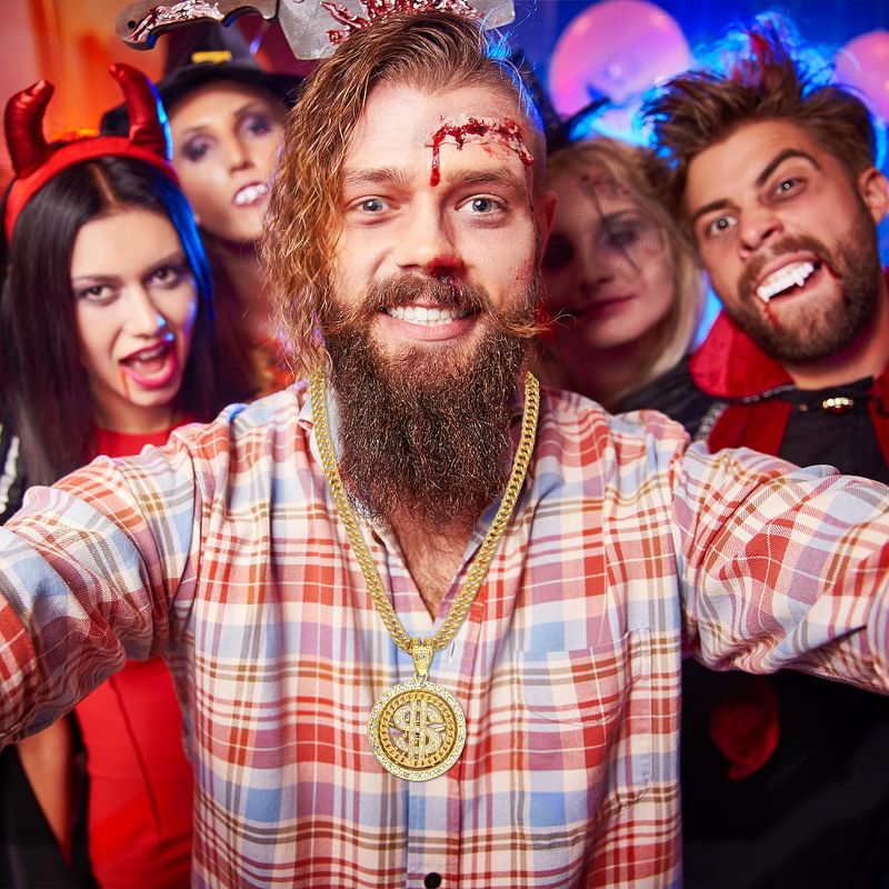18K Gold Hip Hop Necklace for Men - Dollar Sign & Lion Head Pendant, 30 Inch