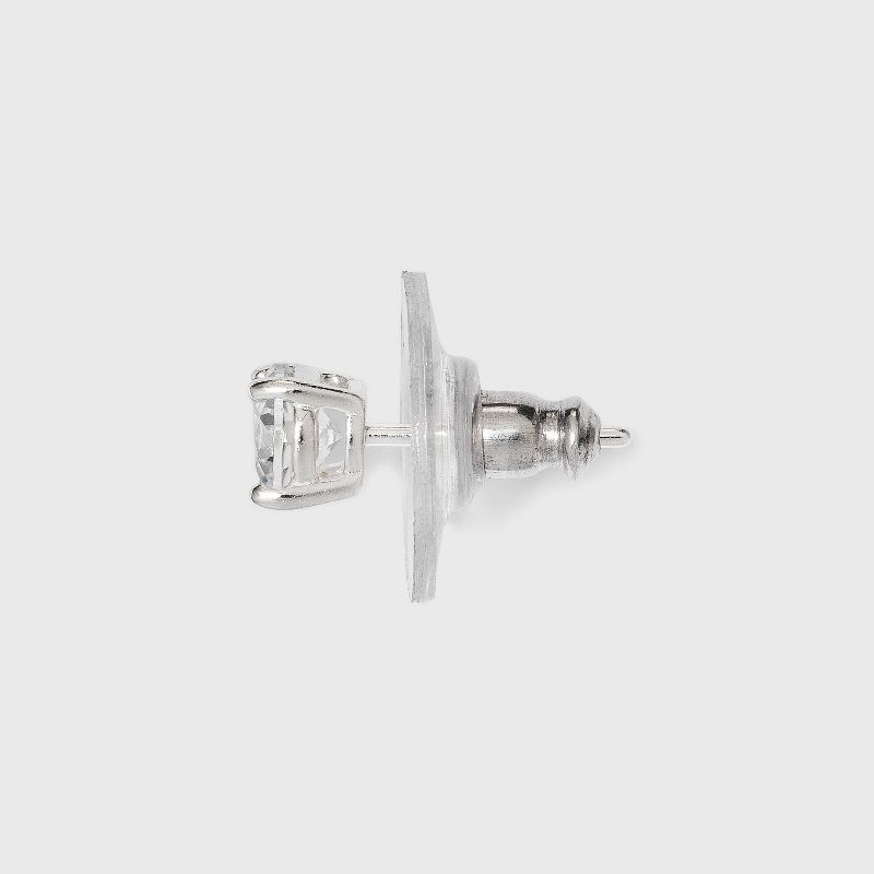 Women's Sterling Silver Cubic Zirconia Stud Earrings - A New Day™ Silver/Clear: Polished Nickel-Free Basket Setting