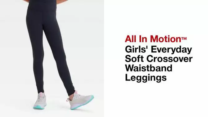 Girls' Everyday Soft Crossover Waistband Leggings - All In Motion™ Black M: High Rise, Moisture Wicking, Knit