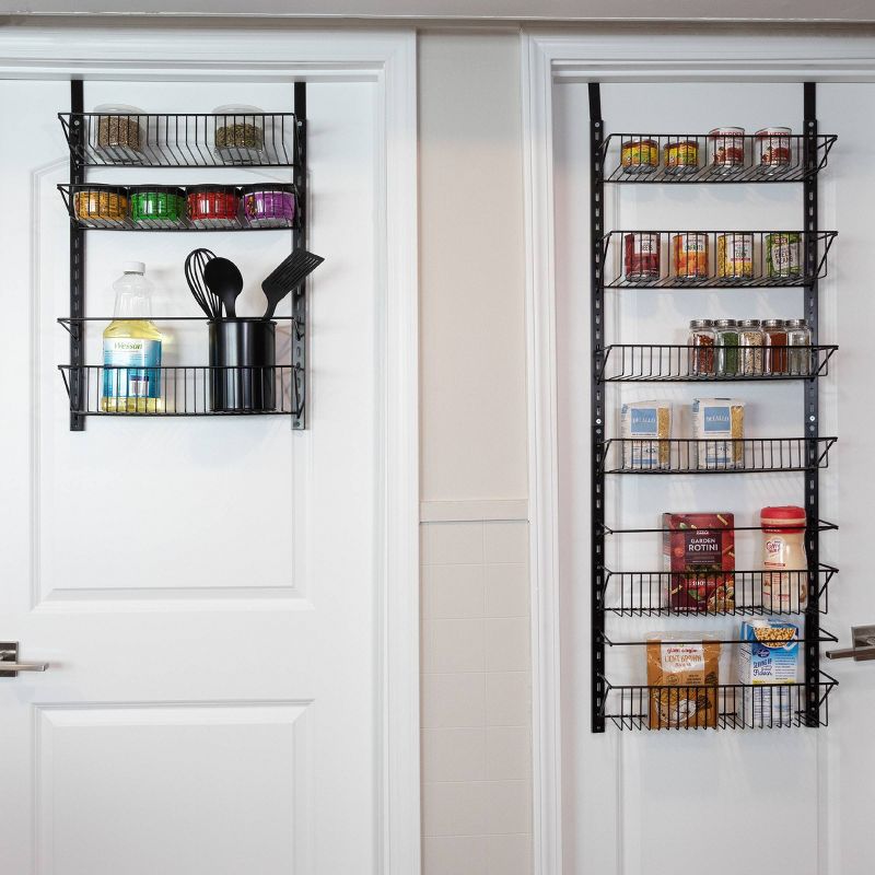 Home-Complete Over The Door Black Organizer 9-Tier Hanging Wall Organizer: Metal Kitchen Storage, 74" Height, 17.7" Depth