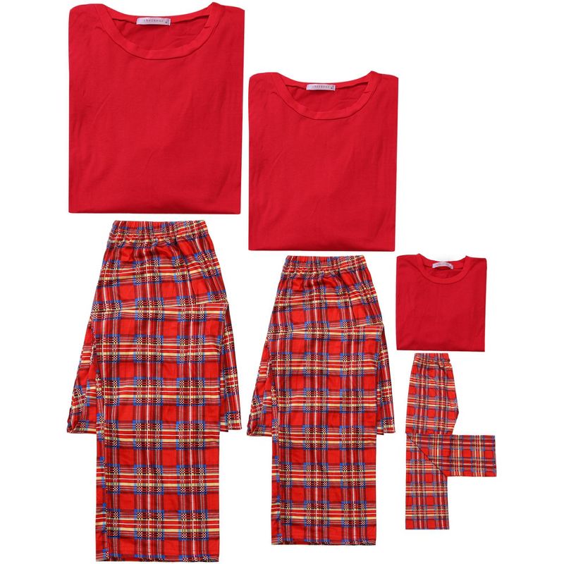 cheibear Christmas Long Sleeve Solid Tops Tee with Plaid Pants Family Pajama Sets Red Red Women's Small