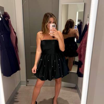 Women's Strapless Embellished Bubble Mini Dress - A New Day™ Black L