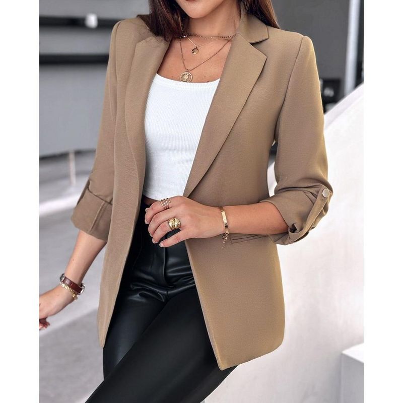 Coolmee Blazers for Women Suit Jackets Dressy Open Front Long Sleeve Blazer Business Casual Outfits Khaki M