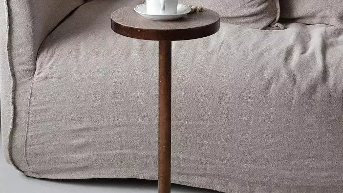COZAYH Small Pedestal Round End Table, Living Room Furniture, Light Espresso