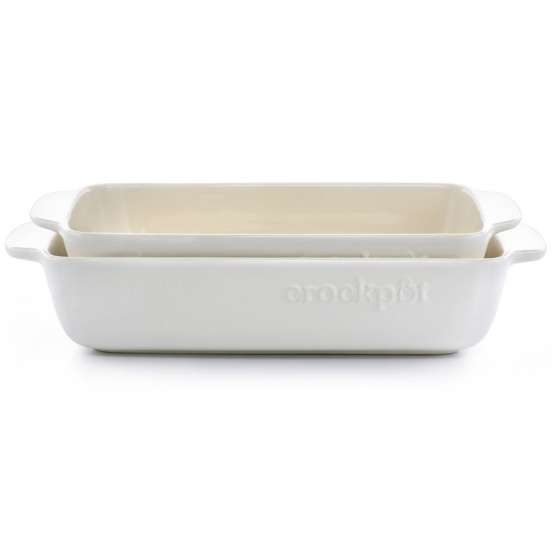 Crockpot Artisan 2.5 Quart and 3.5 Quart Rectangular Stoneware Bake Pan Set in Cream