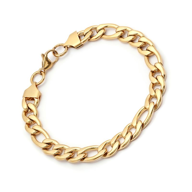 Steeltime Men's 8" 18k gold plated stainless steel Franco chain bracelet. Color Options: Silver, Gold