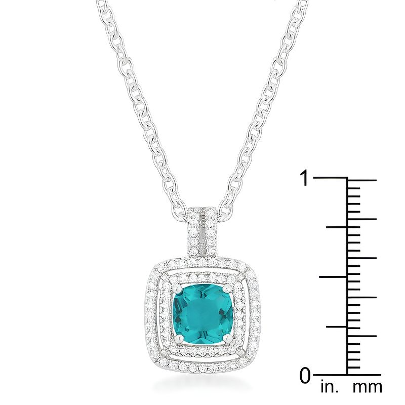 Slickblue Aqua Halo Pendant Necklace for Women – Rhodium Finish, Princess Cut Aqua CZ, 18” Adjustable Chain