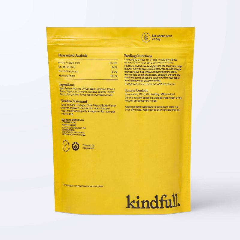 Rawhide Alternative Collagen Roll Peanut Butter Flavor Adult Dog Treats - Kindfull™ - 8.8oz/5ct