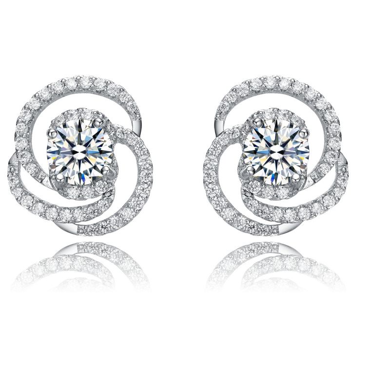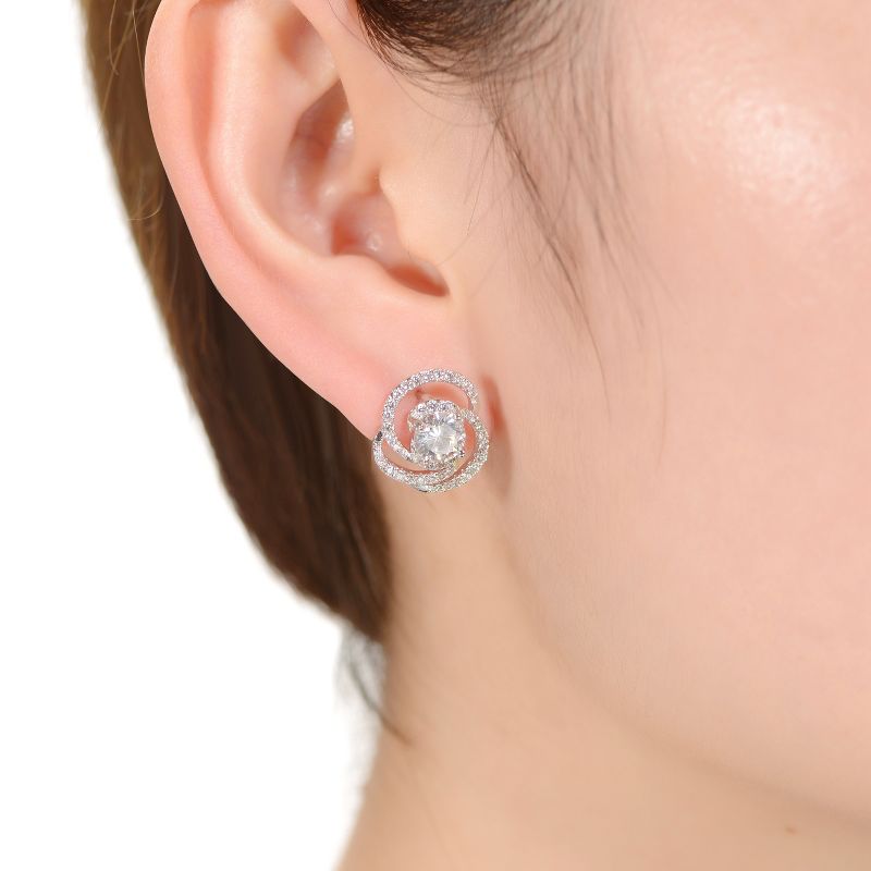 Guili White Gold Plated Solitaire Love Knot Swirl Stud Earrings with Cubic Zirconia, A Romantic & Graceful Jewelry Piece That Symbolizes Love