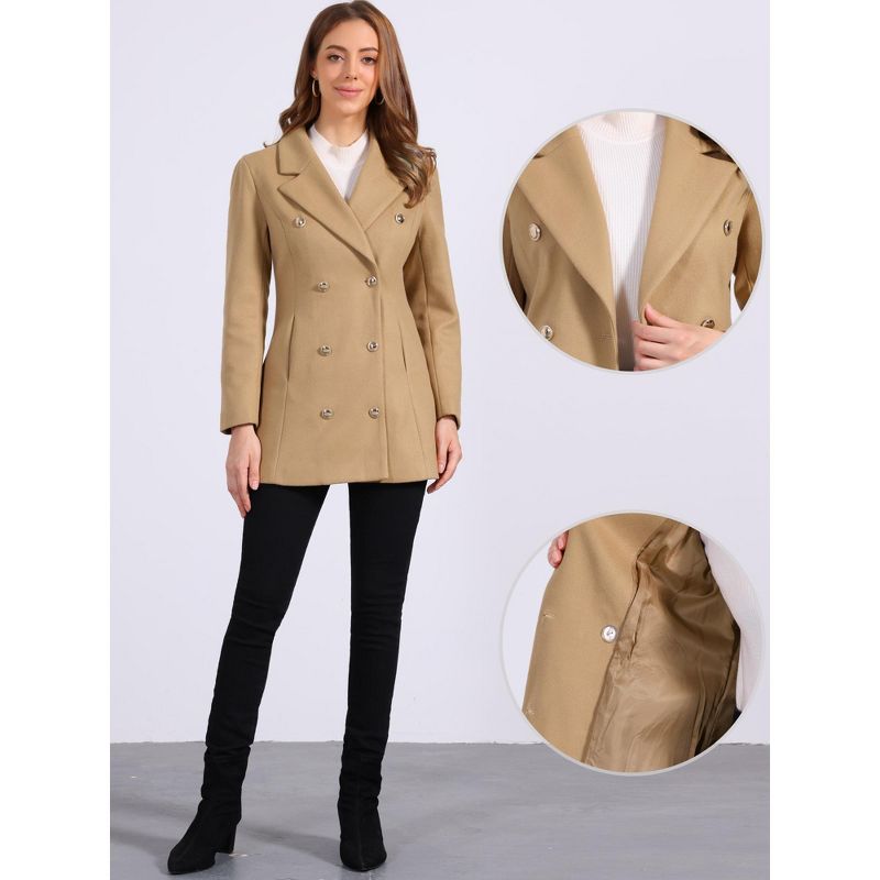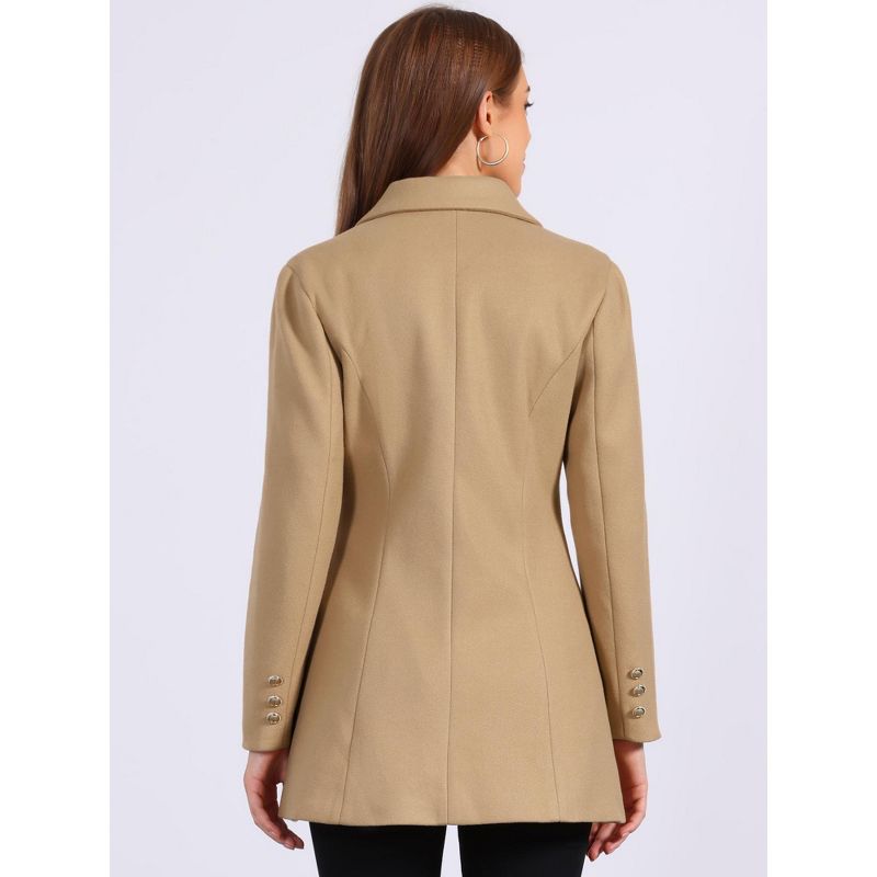 Allegra K Women's Winter Overcoat Notch Lapel Double Breasted Coats Medium Khaki