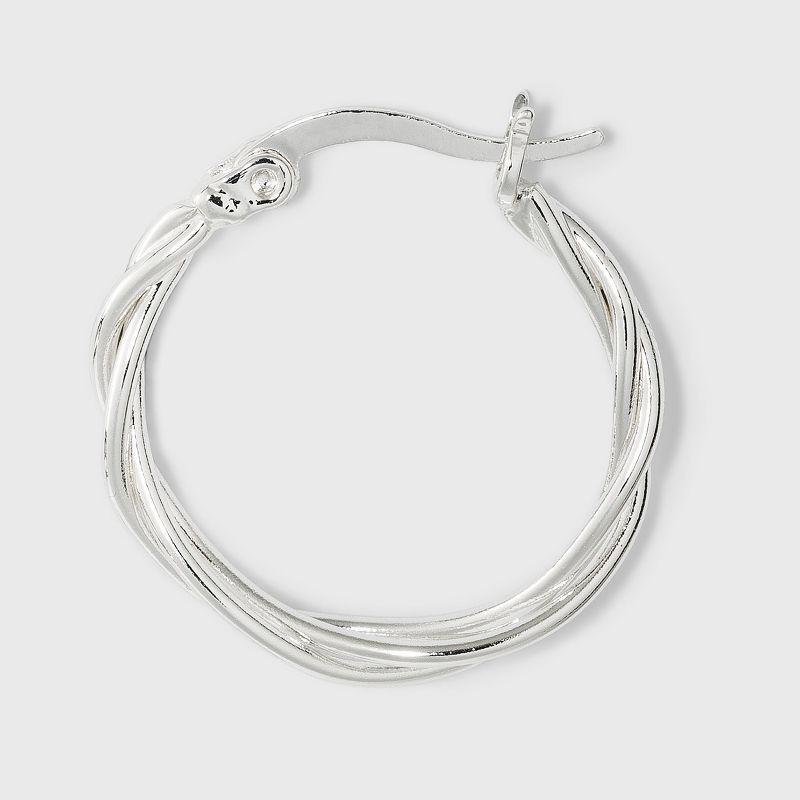Silver Plated Braided and Polished Hoop Earring Set 2pc - A New Day™ Silver: Nickel-Free, Snap Closure