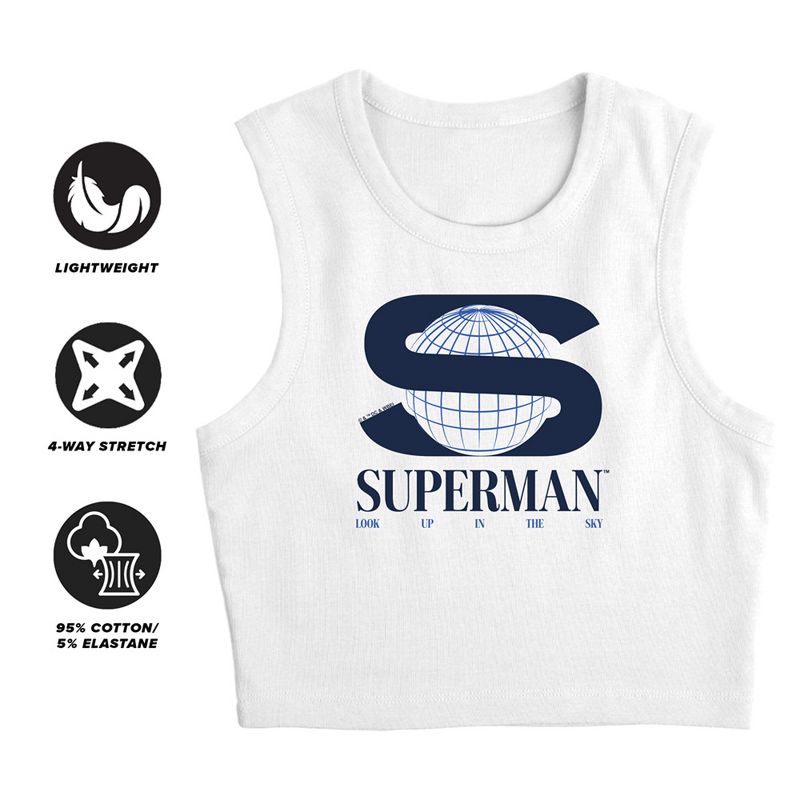 Women's Superman 2025 S World New Logo Sleeveless Crop Top Tank, White, Large