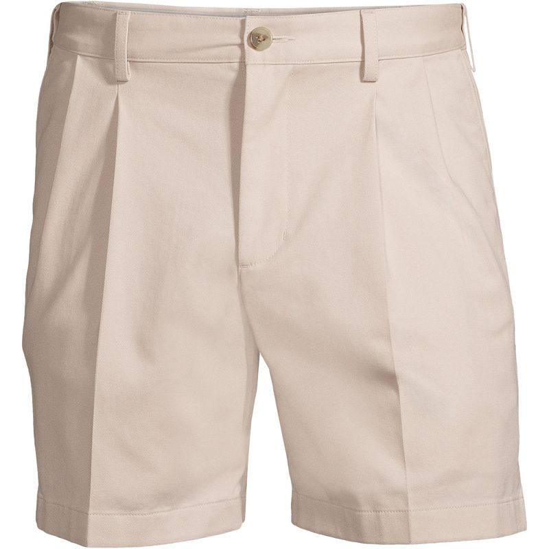 Lands' End Men's No Iron 6" Comfort Waist Pleated Front Chino Short - 34 - Light Stone