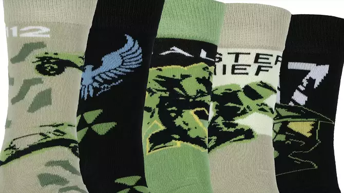 Halo Socks Men's Master Chief Military Game 5-Pair Pack Mid-Calf Crew Socks Multicolored