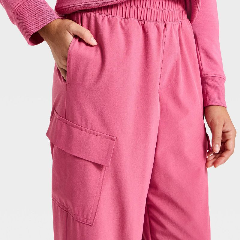 Girls' Active Light High-Rise Cargo Jogger Pants - All In Motion™ Berry Pink L