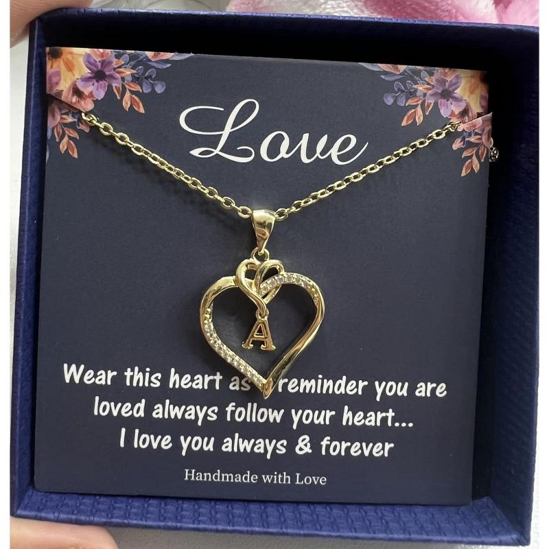 14K Gold Plated Heart Initial Necklace with CZ Accents for Women and Teens Gold M