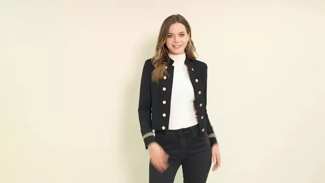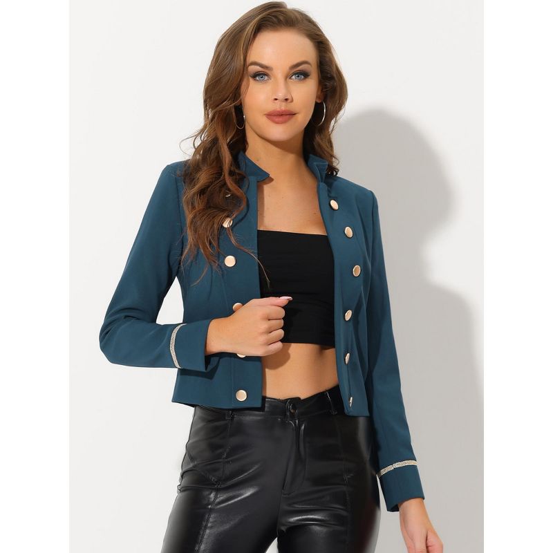 INSPIRE CHIC Women's Vintage Steampunk Open Front Button Decor Casual Jacket Medium Lake Blue