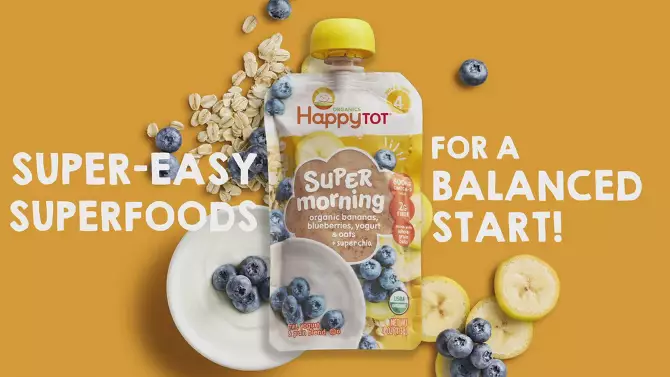Happy Tot Super Morning Organic Bananas, Blueberries Yogurt, Oats & Chia Toddler Pouch - 4oz
