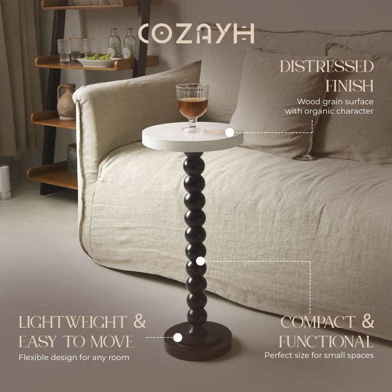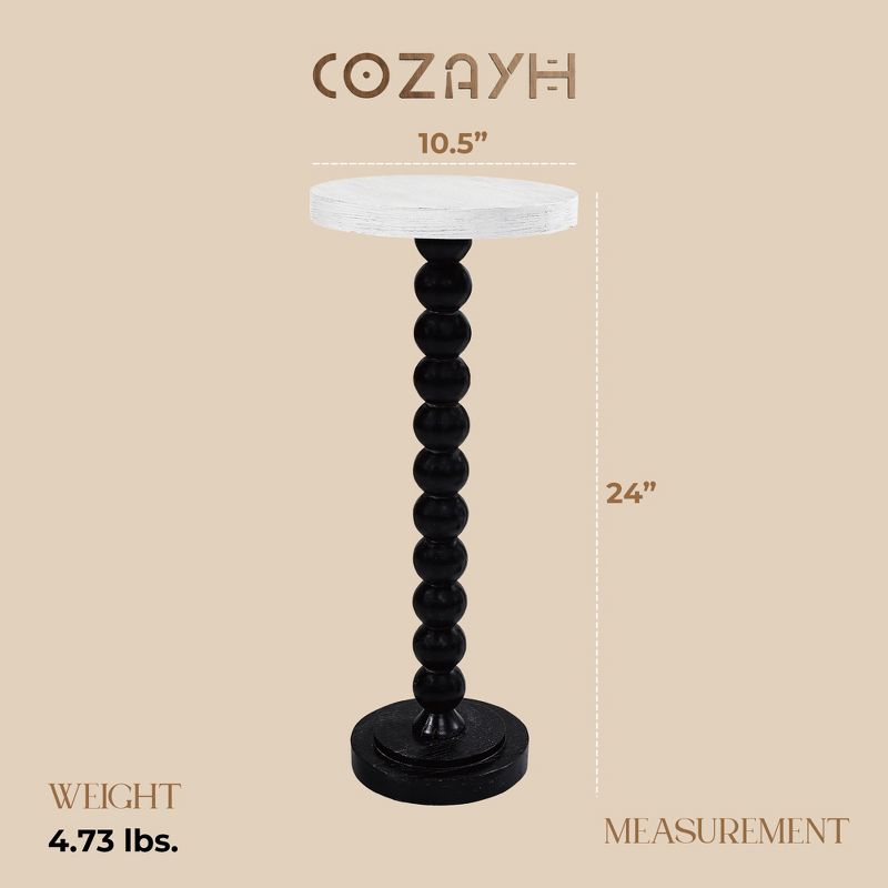 COZAYH Small Pedestal Round End Table, Living Room Furniture, Black and White