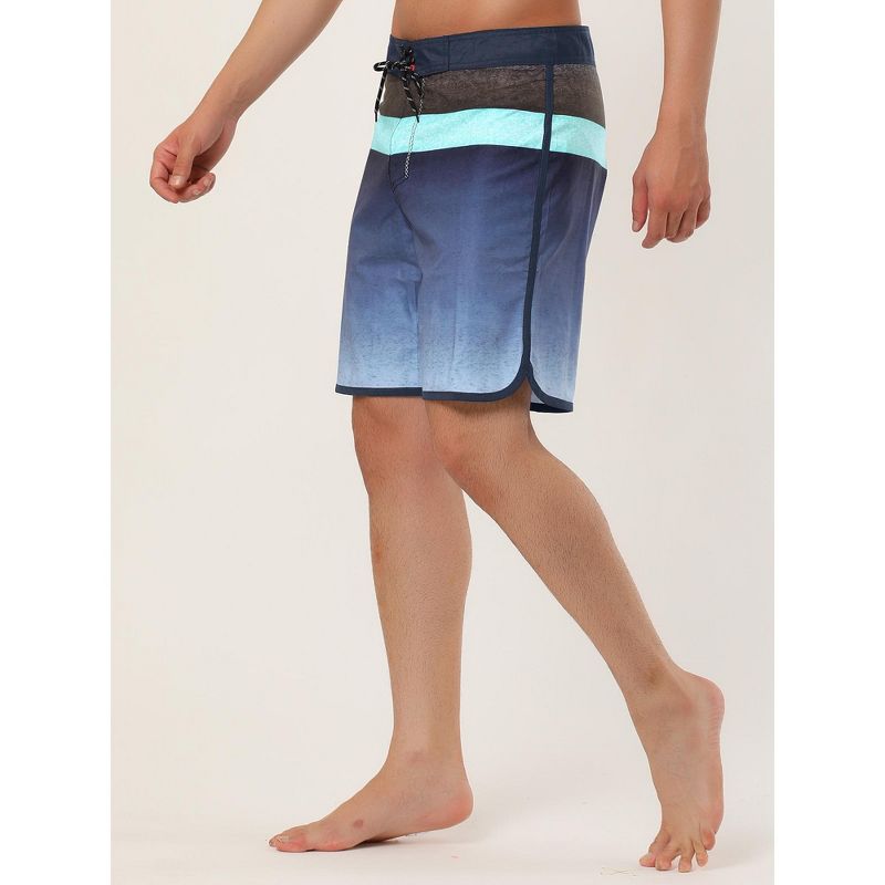 INSPIRE CHIC Men's Summer Color Block Drawstring Swim Beach Board Shorts Dark Blue 34