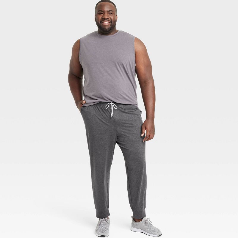 Men's Big Soft Stretch Jogger Pants - All In Motion™ Heathered Black 2XL: Recycled Polyester, Spandex, Moisture Wicking, UPF 50+
