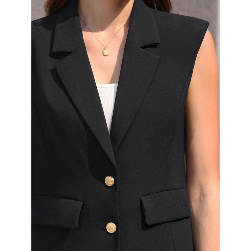 INSPIRE CHIC Women's Sleeveless Lapel Notched Collar Button Down Summer Business Blazer Small Black